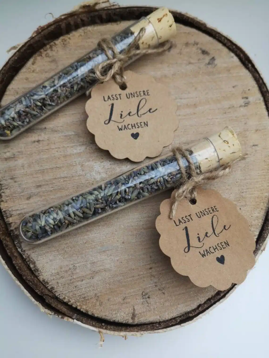 Die Röhrchen sind mit Badesalz und getrockneten Lavendelblüten gefüllt,ein Geschenkanhänger ist auch dabei. Dieser Mix eignet sich beispielsweise für ein aromatisches Badeerlebnis.